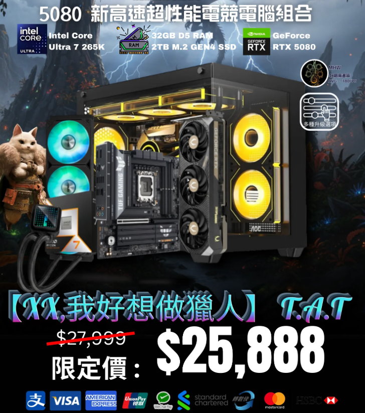 【魔物獵人 | 荒野 | 4K 光速全開READY】5080 新高速超性能電競電腦